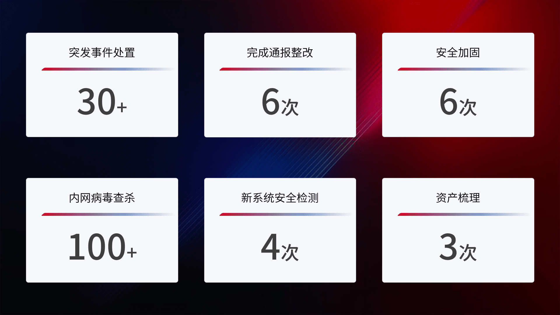 网络安全加固与风险管理:通过技术加固手段,,,,如加强区域隔离,,,,缩减攻击内网横向移动的范围;优化现有网络安全管理制度,,,,降低网络威胁暴露面,,,减少被黑客攻击的可能性。。